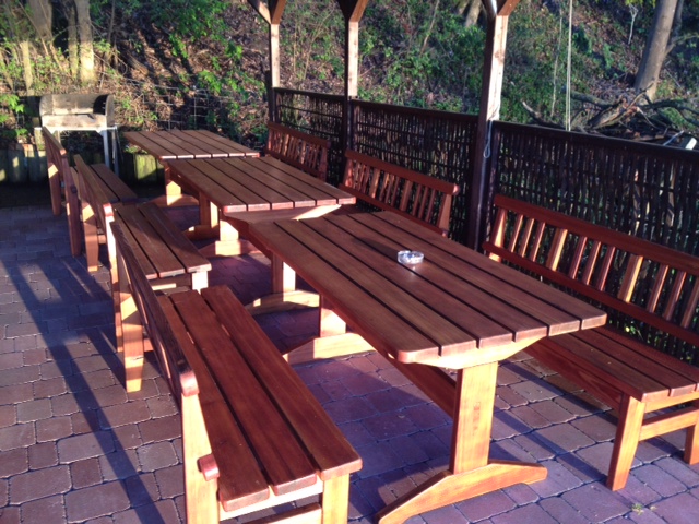 Unsere Tische und Bänke sind zurück vom Service – wurden geschliffen und frisch gestrichen. Die Farbe ist bereits getrocknet 😉